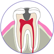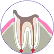 神経(歯の中にも神経があります)に達するような大きいむし歯では、歯の根っこから神経を取り除かなければなりません。